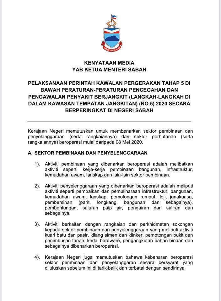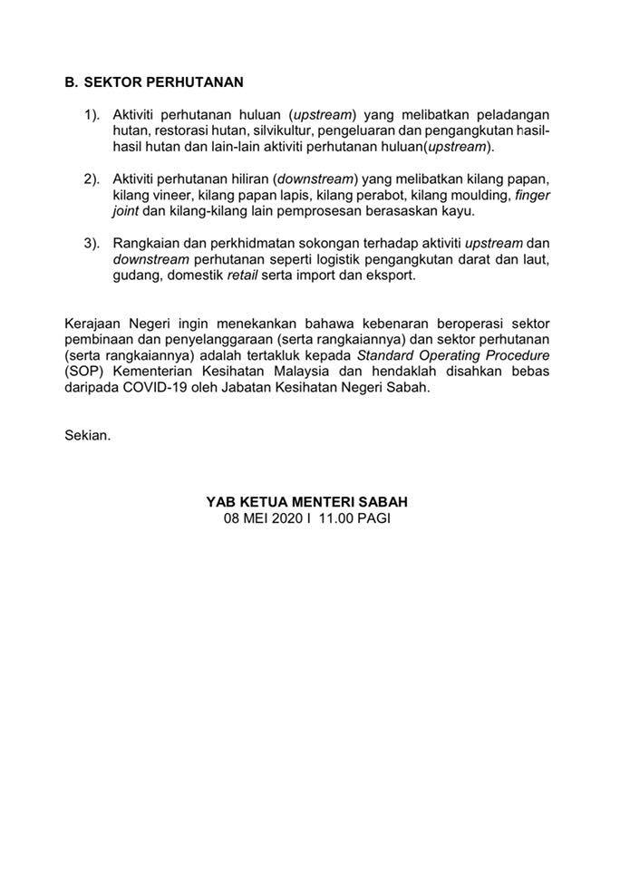 Maklumat terperinci mengenai sektor yang dibenarkan beroperasi adalah seperti berikut (bermula pada 9 Mei 2020):-